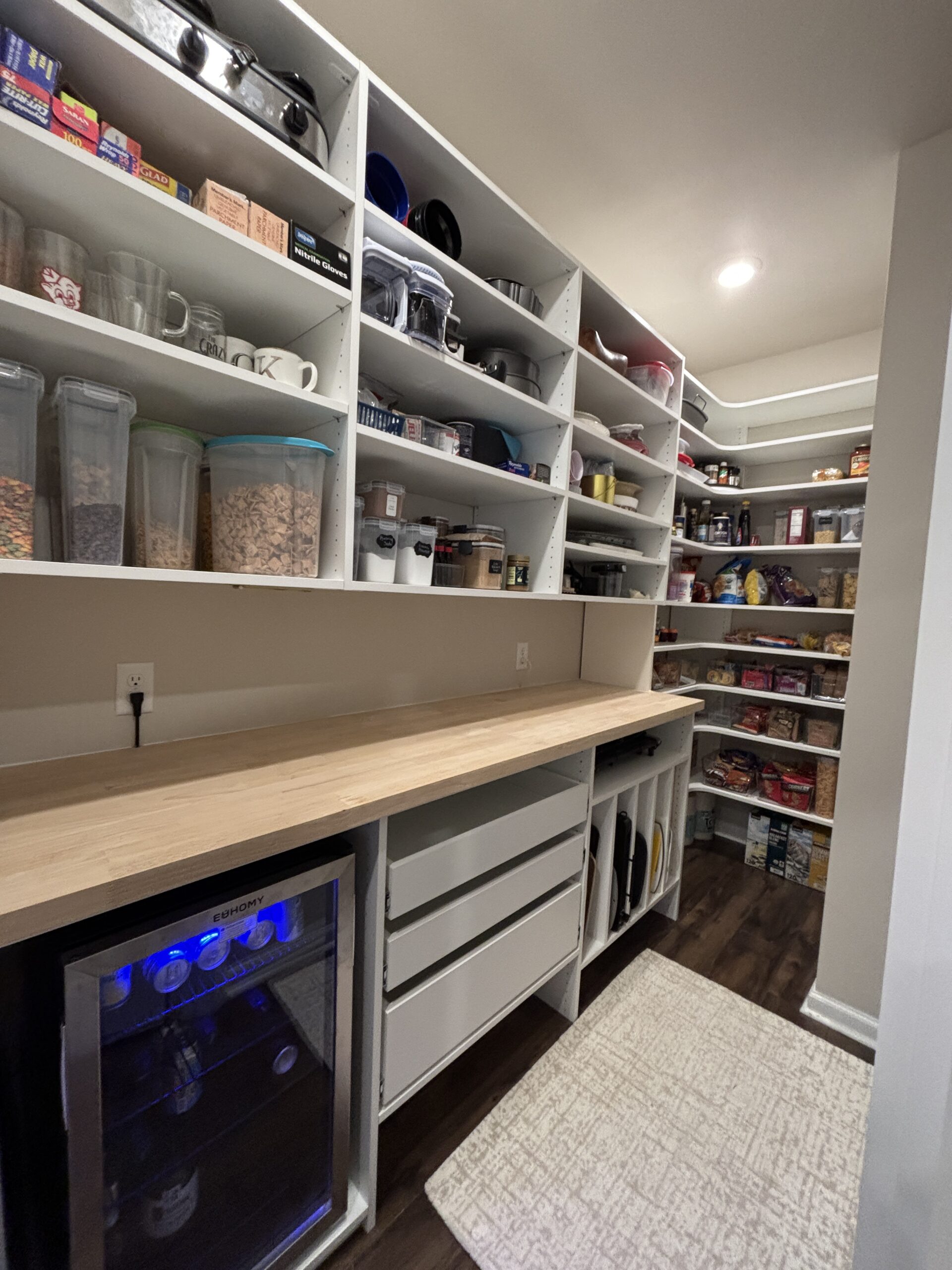 Custom shelves, pull-out racks, and drawers to make every square foot count, ensuring your pantry stays organized and clutter-free.