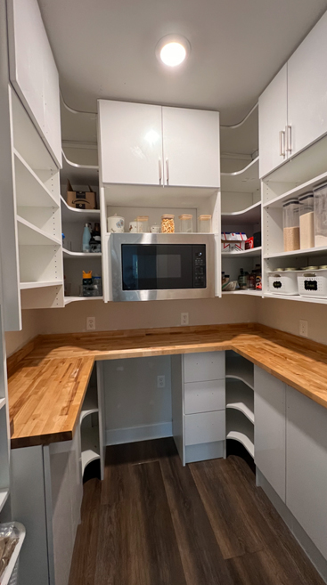 Custom shelves, pull-out racks, and drawers to make every square foot count, ensuring your pantry stays organized and clutter-free.